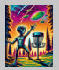 Colorida alienígena Extraterrestre jogando golfe colorido de golfe.