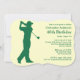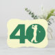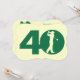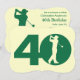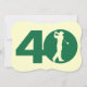 Você pode personalizar todo o texto deste convite de aniversário temático do 40º golfe. Você pode mudar o texto e o número na frente e usá-lo para 50º, 60º, 70 ou outro aniversário. A design apresenta uma silhueta de um golfista balançando um clube feito para parecer o zero em 40 na frente. Floresta verde e bronzeada