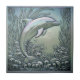 Mergulhe na elegância dramática com este azulejo de golfinho único no estilo de relevo. Projetado para imitar metal cinzelado e em relevo, o golfinho detalhado é colocado em meio a algas marinhas e bolhas. O acabamento apresenta um brilho iridescente luxuoso e mutável - como madrepérola ou cromado com película de óleo - que captura a luz em tons de aqua prateado e violeta pálido. Perfeito para adicionar um toque náutico sofisticado, moderno e de alto impacto a qualquer espaço interior sofisticado. Procure ID1223 para ver outros elementos marinhos desta série metálica dramática. Nota: o design pode conter conteúdo gerado.