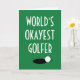 Cartão de cumprimento engraçado de golfe World's Okayest Golfer. Cartões de cumprimento personalizados especiais para jogador de golfe, amigo, colega de trabalho, família, filho, filha, marido, esposa, mãe, pai, namorado, namorada, chefe, parceiro de negócios, crianças, treinador, instrutor, professor, amigo, neto, etc. Bola de golfe branca na borda do buraco no design do green. Tamanho extra grande disponível também. Perfeito para amantes do golfe. Este cartão físico real é enviado diretamente online pela empresa de impressão Zazzle ao destinatário. Ótimo para aniversário, aposentadoria e mais.