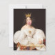 Pop trabalho de arte de remix de uma pintura vintage de uma mulher vestindo uma coroa dourada com uma pastilha elástica cor-de-rosa.