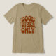 Spread positivity in style with this minimalist "Good Vibes Only" tee. Retro 70s-inspired arched font, subtle geometric patterns, and soft earthy tones create a laid-back, feel-good vibe that's perfect for everyday wear.