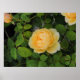 Gotas de chuva escutam num rosa amarelo cremoso em Inglês em meio a um mar de folhas verdes brilhantes. Esta pintura digital é baseada em uma fotografia original de Jayne Wilson.