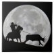 Muito legal azulejo de arte ocidental de um vaqueiro a ropar um boi à luz de uma grande lua de cheio. Surreal e única faz um excelente de sotaque ou presente.