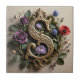 This design is special for its dimensional gold scrollwork contrasting with the letter 'S's dramatic, cracked dark slate patina. It is encircled by a lush botanical wreath featuring a bold purple rose, red poppy, and blue thistles, intertwined with mossy branches. This creates an opulent, moody, and highly detailed Victorian-style monogram.