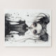 Quebra-cabeça de quebra-cabeça com gótica em preto e branco.