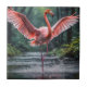 Esta imagem captura a elegância e a beleza de um flamingo cor-de-rosa ao exibir suas asas esticadas enquanto balava num rio.A imagem evoca um senso de tranquilidade e de equilíbrio natural, destacando os movimentos graciosos do flamingo e o ambiente aquático sereno ao seu redor. A peça celebra a harmonia entre a ave e seu hábitat, enfatizando tanto a majestade do flamingo quanto a pacificação do calçadão.