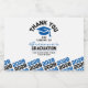 Graduação Azul e Preta Obrigado Mini Etiqueta de Garrafa Liquor - Coleção de Fundo Repetida Personalizada com o nome do seu formando, escola e ano