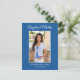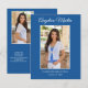 Placa plana de anúncio de graduação azul, moderna, fofa e cônica, com dois lados, para a classe de 2022 ou a qualquer ano. Personalize com sua própria foto na frente, seu nome, nome da escola e ano de graduação. Formatado verticalmente. A parte de trás deste cartão tem duas fotos e todos os detalhes que você quiser. Isso pode ser feito em segundos graus, planos para o futuro, informações festas de formatura ou qualquer outra coisa que você queira compartilhar. A cor de fundo também é personalizável.