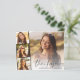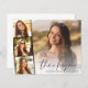 O obrigado moderno de graduação de orçamento que você apresenta a foto do formando sobrepôs-se com uma faixa de três fotos quadradas menores, "obrigado você" em um roteiro de na moda, e o nome, ano escolar e de aula em uma simples tipografia. Ao contrário, personalize um obrigado que você envia e adicione o nome do formando em um script semelhante a assinatura.