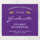 Celebre o marco do seu formando em estilo com estas etiquetas de garrafa de vinho espumante de graduação personalizada, que contêm a expressão "Parabéns ao nosso Formando" em texto branco sobre fundo roxo. A palavra "Formando" aparece em um script gracioso no estilo de escrita manual. Um par de bonés de conselho de argamassas de brilho dourado e uma dispersão de ouro confete decoram a parte superior da etiqueta. Personalize-o com seu formando, escola e ano de graduação.