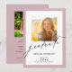 Este elegante convite para festas de formatura oferece duas imagens fotográficas, uma na frente e outra atrás. O design é acentuado com o texto do estilo de letra da moda e uma borda rosa empoeirada. Personalize a parte de trás com os detalhes do seu convite de festas.
