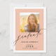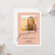 Este elegante convite para festas de formatura oferece duas imagens fotográficas, uma na frente e outra atrás. Este design cor de laranja claro é acentuado com o texto do estilo de letra na moda e uma borda branca espessa. Personalize a parte de trás com os detalhes do seu convite de festas.