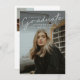 Esta combinação de convite para apresentação de na moda, elegante e de licenciatura, apresenta uma camada de formandos de script e um nome personalizável, escola e foto na frente. A parte traseira oferece felicitações e detalhes de eventos com mais 2 fotos. Uma forma excelente de mostrar seu formando.