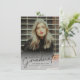 Esta combinação de convite para apresentação de na moda, elegante e de licenciatura, apresenta uma camada de formandos de script e um nome personalizável, escola e foto na frente. O backside oferece gratos e detalhes de eventos com mais 2 fotos. Uma forma excelente de mostrar seu formando.