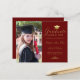 Este elegante cartão de anúncio personalizado de graduação de fotos do orçamento apresenta sua foto à esquerda e à direita um falso boné de ouro com a palavra "Formando", classe/ano, nome e outros detalhes da cerimônia na caligrafia formal faux gold script para personalizar em um fundo de marrom vermelho. Desenhada por Susan Coffey.