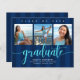 Anuncie ao mundo que o seu formando favorito alcançou o seu marco com este incrível, simples, moderno, convite para o anúncio de orçamento personalizado. Espetacular, elegante, falso roteiro de caligrafia azul-turquesa e escrita de serifpografia branca sobre um fundo listrado azul-marinho. Adicione três fotos de sua escolha e personalize o texto personalizado com o nome do formando, o nome da escola, o ano de aula e a data de formatura. Na parte de trás, adicione seu bilhete pessoal, na próxima escola que frequentam, informações sobre festas, etc. Garantido para adicionar diversão na moda à sua ocasião especial! Basta substituir as três fotos de exemplo por fotos próprias, digitar as informações do seu formando, personalizar a mensagem no verso e você pode personalizar facilmente este convite de lançamento de graduação de orçamento. Por favor, me mande mensagens com quaisquer perguntas ou solicitações.