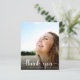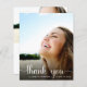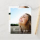 Um cartões de agradecimentos de graduação econômico que apresenta a foto do formando sobreposta com "obrigado você" em um roteiro branco de na moda com baloiços e seu nome e ano de classe na tipografia branca moderna. No verso, adicione uma foto adicional, personalize um obrigado que você envia e adicione seu nome em um script semelhante a assinatura.