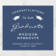 Celebre o seu marco de formando em estilo com estas etiquetas de garrafa de vinho espumante de graduação personalizada, com as palavras "Parabéns ao nosso Formando" em texto branco sobre fundo azul marinho, decorado por um par de bonés de conselho de argamassa branca. A palavra "Formando" aparece em um script gracioso no estilo de escrita manual. Personalize-o com o nome do formando, a escola e o ano de graduação.