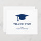 Cartões de agradecimentos clássico de graduação de orçamento com um design simples e minimalista com um conselho de argamassa junto com o formando em azul marinho em negrito sobre um fundo branco. O backside tem sua mensagem pessoal ou você pode excluir o modelo se quiser escrever sua mensagem manualmente. Um design tradicional com um toque masculino perfeito para um formando.