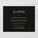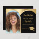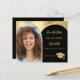 Uma foto Salve a data de uma festa de formatura. Na frente: adicione sua própria foto vertical do formando. Um falso quadro de arco de fotos dourado. Um clássico ouro falso e fundo preto, texto de ouro. Modelos para um nome e data. O nome e o texto: Salvar a Data são escritos com um script de estilo moderno com letra manual. Com um boné, tassel superior. Voltar: detalhes da festa. 1 folha = 1 Salve a data da borda impressa para a borda.