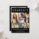 O anúncio da formatura negra e elegante para celebrar o formando com "FORMANDO" no topo em grande tipografia branca, uma colagem de sete fotos e seu nome, ano de aula e escola em tipografia branca moderna. No verso, adicione uma foto adicional e uma mensagem personalizada.