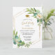Este convite inclui ouro e flores beges com folhas verdes, entalhes de eucalipto. É perfeito para a festa de formatura!