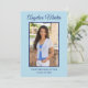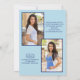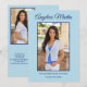Placa plana de anúncio de fotos com dois lados, moderna, fofa e chic, azul suave, com dois lados, para a classe 2022 ou qualquer ano. Personalize com sua própria foto na frente, seu nome, nome da escola e ano de graduação. Formatado verticalmente. A parte de trás deste cartão tem duas fotos e todos os detalhes que você quiser. Incluir realizações de segundos graus, planos para o futuro, informações de festa de formatura ou qualquer outra coisa que você queira compartilhar. A cor de fundo também é personalizável.