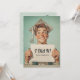 Uma alegre graduada retrô dos anos 50 com touca e capa segura um convite, pronto para texto ou design personalizado, contra um fundo brilhante.