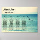 Poster de gráfico de assentos de temas de gaivota, texto modelo para quatro mesas com nomes de convidados.
