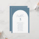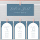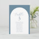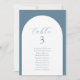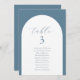 Placa de Gráficos com Nomes de Convidados com Número de Tabelas Azul de Arch Minimalista Moderno. Todos os textos estão pré-organizados para que você personalize fácil e rapidamente com seus próprios detalhes.