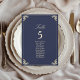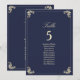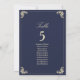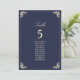 Elegante gráfico de assentos de casamento azul naval barroco e dourado com floreios ornamentados vintage, tipografia sofisticada e layout formal para guiar os convidados às suas mesas. Perfeito para casamentos de luxo, este gráfico de assentos é totalmente personalizável com nomes de convidados, atribuições de mesa e detalhes do seu casamento. Um design atemporal e sofisticado que combina com toda a suíte de casamento azul naval barroco, adicionando requinte à decoração da sua recepção.