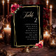 Gráficos de assentos de casamento elegantes e sofisticados em vermelho burgundy escuro e preto com flores lindas e folhas verdes. Uma fusão encantadora de elegância e charme gótico. Esses convites lindos têm tons ricos de preto e vermelho. A caligrafia é elegante e sofisticada e pode ser facilmente personalizada. Convites de casamento florais românticos e modernos com cores clássicas que nunca saem de moda.