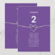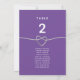 Organize seus convidados de forma bonita com este cartão de gráfico de assentos de casamento roxo moderno. Com um rico fundo violeta, coração de corda prateada elegante e tipografia minimalista limpa, este display de assentos elegante facilita para os convidados encontrar sua mesa enquanto complementa perfeitamente a decoração sofisticada do seu casamento.