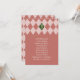 Elevem a sua recepção de casamento e dia de decoração com este cartão de escolta giz terracotta rosa harlequin e lista de assentos. Perfeito para casamento vintage modernos, recepções de primavera ou queda, e celebrações sazonais, este design na moda de lado duplo apresenta padrões de diamante ousados e tipografia clássica para um olhar atraente e eterno. Ideal para ajudar os hóspedes a encontrar seus assentos enquanto melhora o tema do seu casamento, é uma obrigação para um estilo de mesa coordenado (da coleção) e detalhes personalizados do evento.