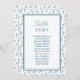 Guie seus convidados de casamento em estilo com este elegante gráfico de número de mesa floral azul. Apresentando uma borda botânica do eterno em matizes azuis suaves, esta design traz um toque sofisticado e clássico a qualquer recepção de casamento. A escrita refinada e a tipografia serif criam uma estética polida, perfeita para casamentos tradicionais, costeiros ou de horta. Totalmente personalizável com seus números de tabela e nomes de hóspedes, fazer-o como uma adição perfeita ao seu decor de casamento.