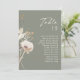 Este gráfico de números da mesa verde de Flor Selvagem Branca é perfeito para o seu simples e elegante casamento de vassoura. As flores silvestres de aquarela minimalistas ajudarão a dar vida à sua visão! O design de bonito flores brancas e douradas, com toques de púrpura e amarela, certamente completará seu sonho de casamento floral em queda! Mantenha-o como está ou escolha personalizá-lo com as suas fotos! Você também pode procurar outros itens nesta coleção para realmente juntar todo o seu casamento!