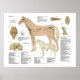 Gráfico anatômico do sistema nervoso equino marcado com descrições. Seção transversal do cérebro e nervos cranianos. Nervos da cauda e do casaco.