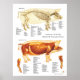 Gráfico anatômico de suínos com vista lateral dos ossos do esqueleto. Vista lateral dos músculos com detalhes no membro posterior e no membro anterior.