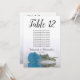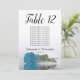 Estas belas cartas de números de mesa facilitarão aos seus convidados encontrar os seus lugares na sua recepção de casamento. Eles apresentam um design simples, mas elegante, com letras de escrita em caligrafia e um solteiro azul-céu, turquesa ou rosa de cor azul-azure que se encontra ao seu lado refletindo na água. O cartão inclui um quadro de lugares com 10 nomes. Há também espaço para os nomes dos casais e a data do casamento. Esta placa está disponível em vários tamanhos e é maior que nossas placas de números de tabela padrão.