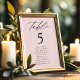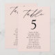 Gráfico de assentos de casamento elegante com "mesa" exibido em um script de caligrafia preta com o número da tabela e os nomes de convidados mostrados abaixo em um fundo de emboscada. O design repete atrás. Para solicitar o gráfico de número de tabela, edite cada cartão com o número da tabela e os nomes de convidado e adicione-o ao carrinho. Projetado para coordenar com a nossa coleção de casamento do Modern Elegance.