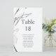 Criados a coordenar com a nossa coleção "Black and White Graphic Leafage Wedding", estes elegantes cartões-quadro de orçamento são perfeitos para uma recepção de casamento simples e moderna. O design dessas placas de números de tabela de dois lados apresenta uma ilustração de folheto gráfico branco e preto abstrato complementada com fontes modernas contemporâneas para uma aparência moderna. Edite facilmente os campos de modelo para adicionar seus números de tabela personalizados e os nomes de seus convidados em fontes de cinza elegantes.