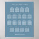Mesa de Gráfico de Casamento de Casamento Dusty Blue 18, personalize os nomes do casal e os nomes dos convidados juntamente com qualquer outro texto que você queira personalizar. Um poster de gráfico na moda com um elegante texto branco sobre um adorável fundo azul empoeirado.