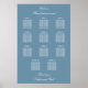 Mesa de Gráfico de Casamento de Casamento Dusty Blue 11, personalize os nomes do casal e os nomes dos convidados juntamente com qualquer outro texto que você queira personalizar. Um poster de gráfico na moda com um elegante texto branco sobre um adorável fundo azul empoeirado.