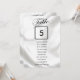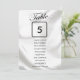 Amplifique a atração da decoração do seu casamento com estes cartões personalizados de assentos para números de mesas, meticulosamente feitos para uma celebração moderna e em escala alta. Mostrando um pano de fundo lustroso de seda branca e uma elegante tipografia cursiva, estas cartas incorporam um refinamento minimalista. Projetados para garantir um arranjo perfeito de assentos, eles orientam os convidados sem esforço para seus assentos designados, enquanto acentuam sua capa de sopa com um toque de grandeza subestimada. Totalmente personalizável, esses cartões permitem que você exiba nomes de convidados junto com números de tabela, adicionando um toque atencioso e personalizado ao seu evento. Distinto dos designs convencionais de ornamentado, essas cartas favorecem contornos elegantes e encanto contemporâneo, perfeito para casais que valorizam a simplicidade graciosa. Que a sua papelaria de casamento irradie sofisticação do eterno e faça uma impressão inesquecível nos seus hóspedes.