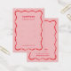 Placa de exibição com forma de preto vermelha em um plano de fundo rosa. Os orifícios de modelo podem ser ajustados ou excluídos, bem como todas as informações de sua empresa. Adicione sua mídia social ou site à parte inferior.