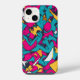Caixa do iPhone 14 com padrão de grafite colorido