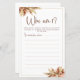 Aceite o charme rústico do outono com nossa Grama Dry Pampas Que Sou Eu Jogo, perfeita para chás de panela de bô e reuniões temáticas. Adorada com sotaques ouros, essa carta branca captura a essência da elegância boêmica, acrescentando um toque de beleza natural a qualquer evento. Deixem as matizes moles de grama-pampas definirem o tom para um delicioso jogo de adivinhação que encantará os convidados e criará memórias queridas.