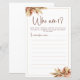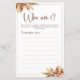 Adote o charme rústico do outono com nosso Cartão de Jogo Quem Sou Eu de Grama Seca dos Pampas, perfeito para chá de noiva boho e encontros temáticos. Adornado com detalhes dourados, este cartão caprichoso captura a essência da elegância boêmia, adicionando um toque de beleza natural a qualquer evento. Deixe que as cores suaves e discretas da grama dos pampas definam o tom para um jogo de adivinhação encantador que vai encantar os convidados e criar memórias inesquecíveis.