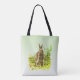 Aqui está uma legal bolsa de tote que apresenta um coelho marrom bonitinho na grama verde.